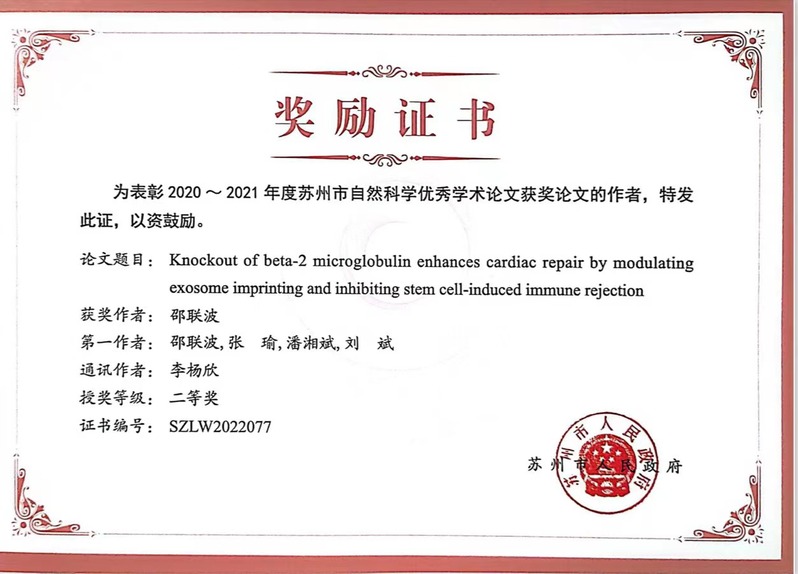| 2022-7-10 团队科研论文荣获苏州市优秀论文一等奖和二等奖 | |