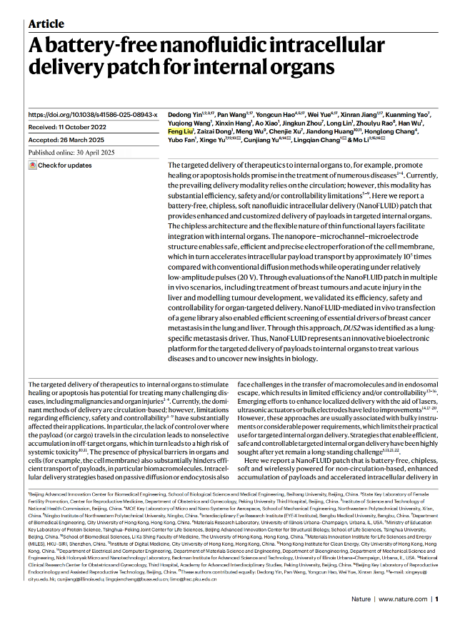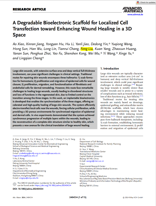 2025-05-28 祝贺本团队硕士毕业生刘冯,现在北京航空航天大学读博,作为共同作者参与了Nature(IF=54.4),PNAS(IF=10.8),Nature Electronics(IF=39.6),Advanced Materials(IF=30.2),ACS nano (IF=16.2)的发表!